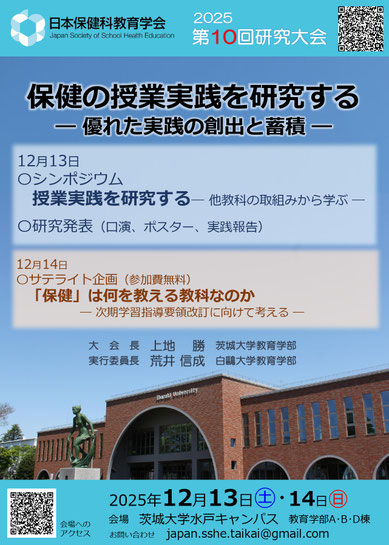 一般演題も募集しておりますので、会員の皆様が日々取組んでおられる実践や研究成果を発表する場としてご活用いただくとともに、保健科教育研究がより活性化する議論の場になれば幸いです。